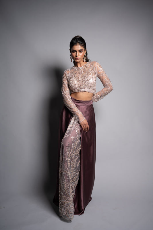Beige Velvet And Silk Rumal Sleeves Embroidered Jacket