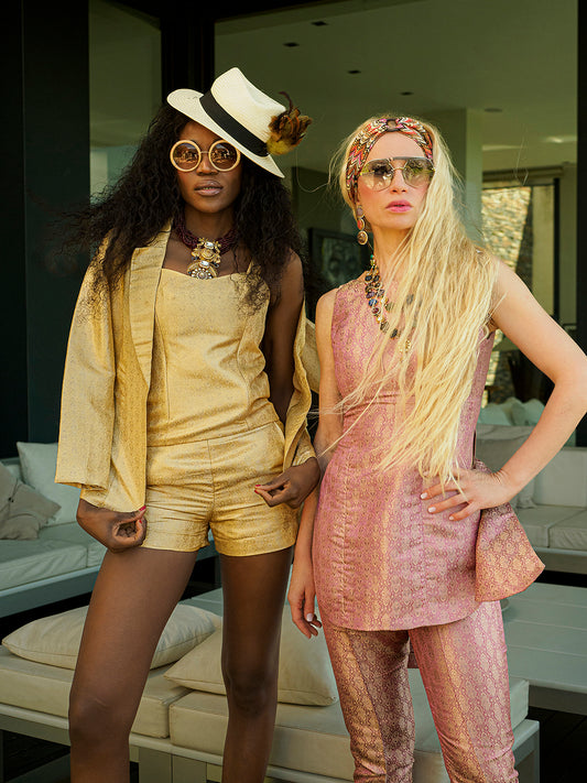 Brocade Vest & Sequin Contrast jacket with Plain Silk Pants