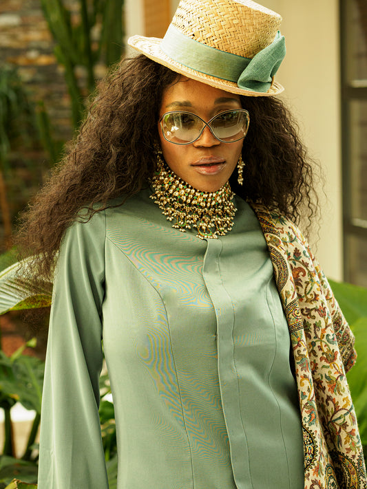 Carved Fluoride Stones & Kundan Crystal Detailing Necklace
