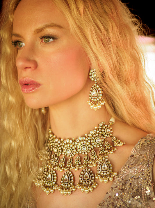 Gold Finish Navaratna Stone Choker