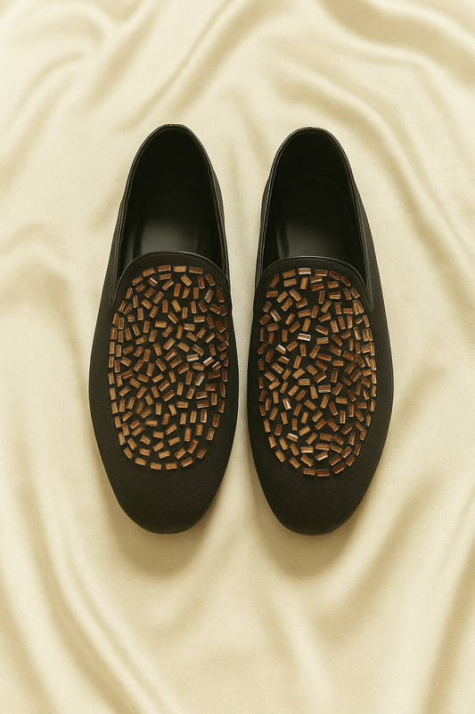 Black Velvet Shoes with Royal Gold Zardozi Work