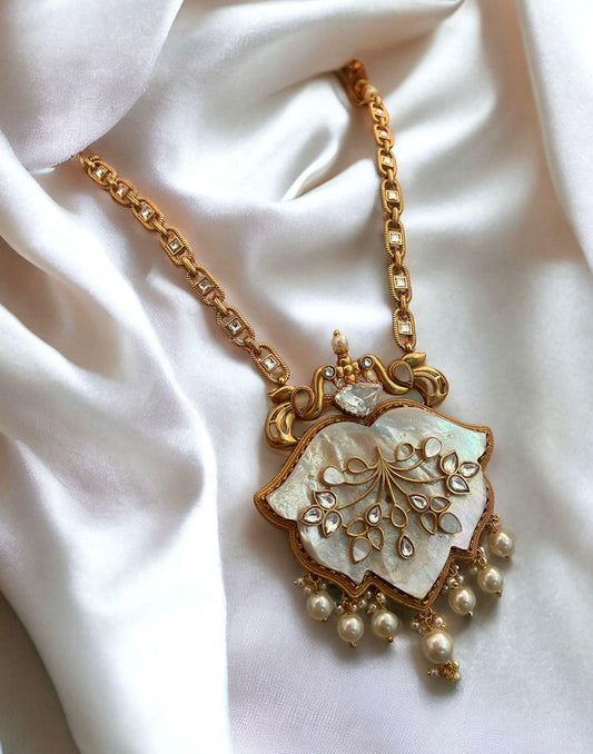 Carved Fluoride Stones & Kundan Crystal Detailing Necklace