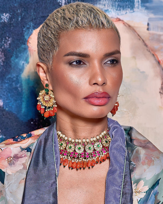 Antic Kundan Crystal Choker and Earrings Set with Cornelian Drops
