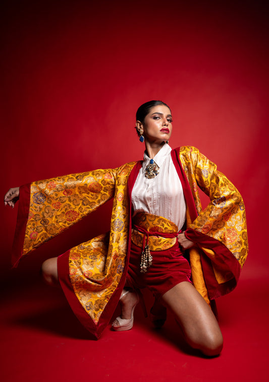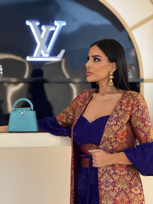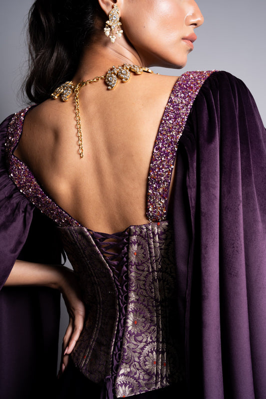 Royal Blue Velvet And Silk Rumal Sleeves Embroidered Jacket