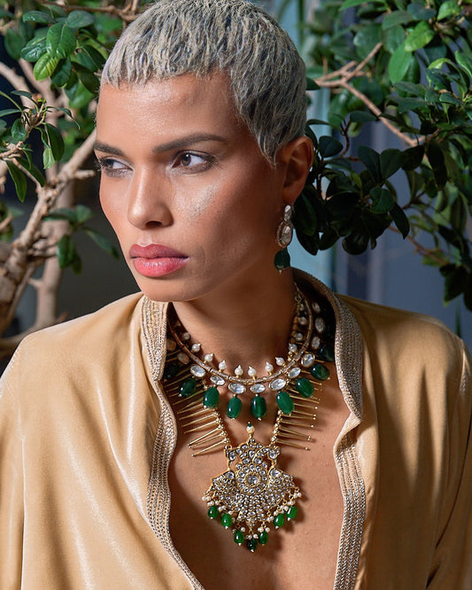Double Eagle Motif in Kundan Crystal Long Necklace