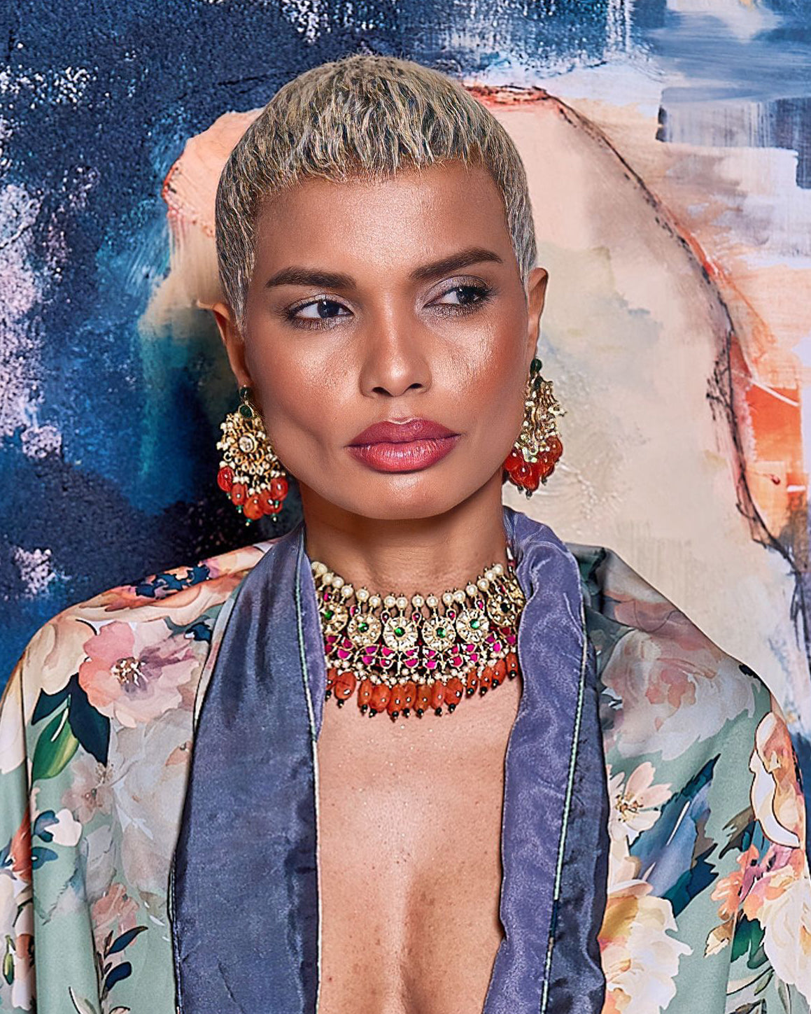 Antic kundan crystal choker with cornelian drops with matching earring.