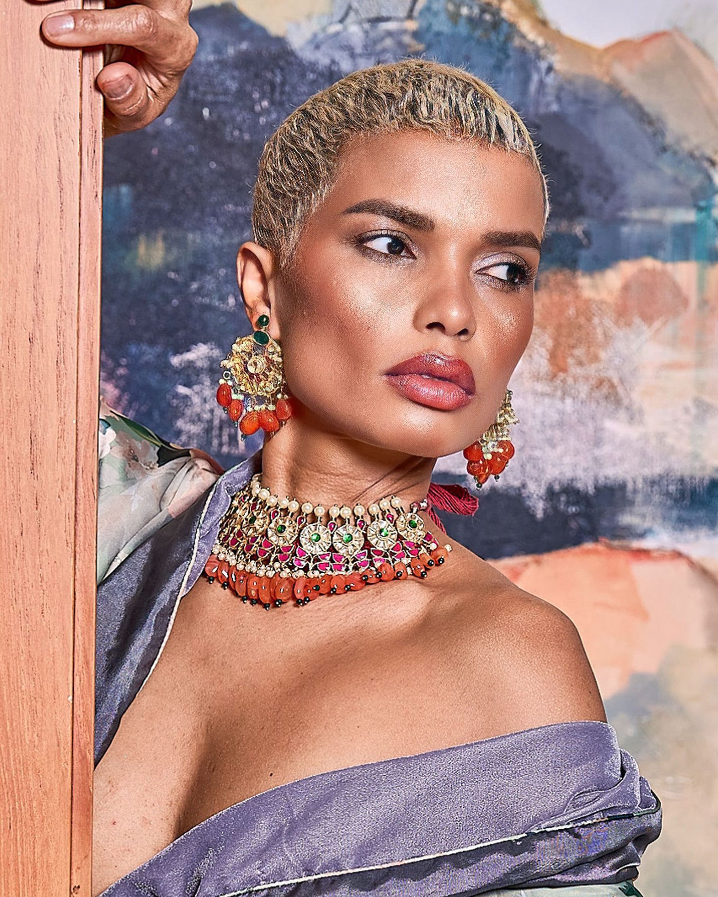 Antic Kundan Crystal Choker and Earrings Set with Cornelian Drops