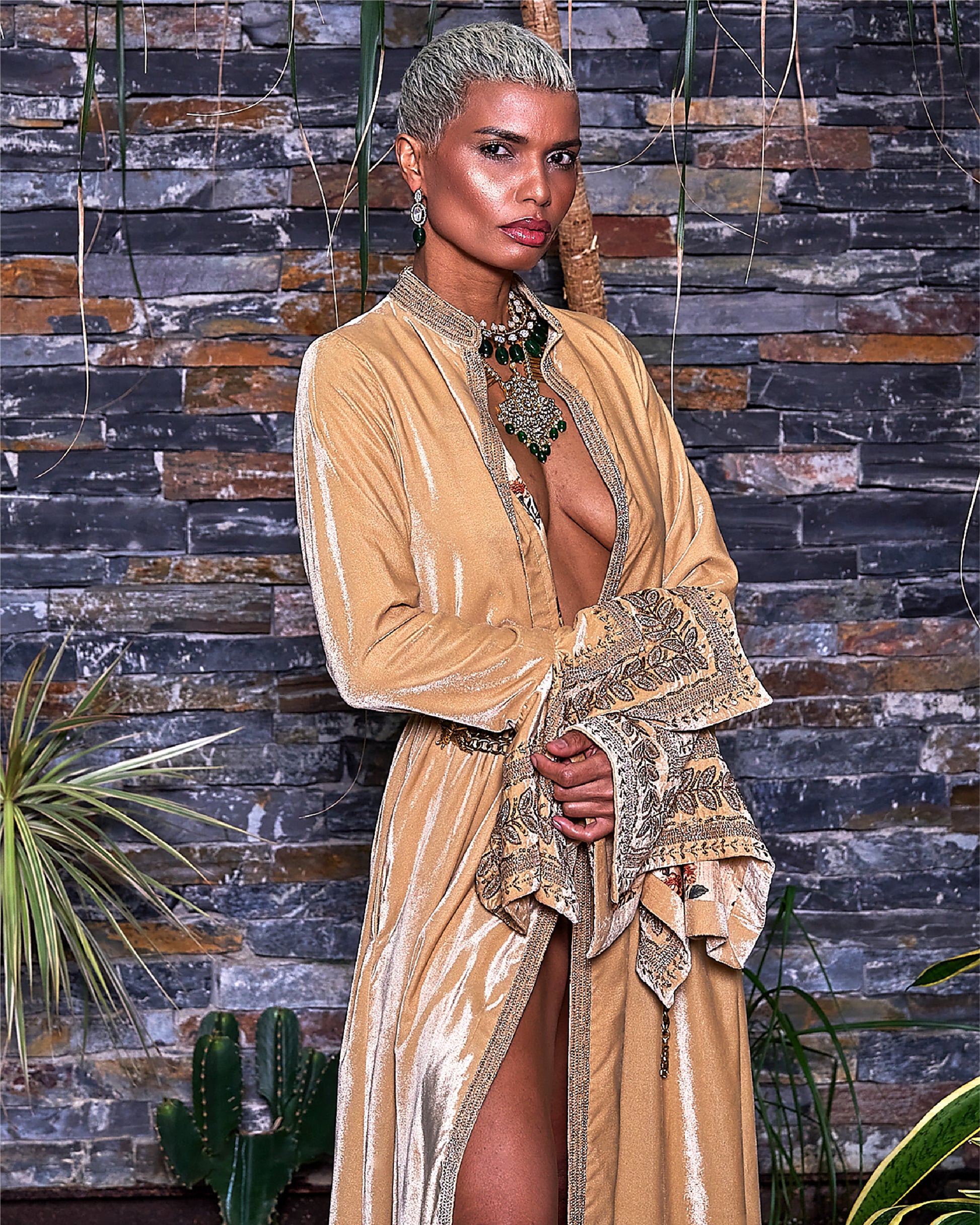 Rumal sleeves beige velvet and silk jacket featuring exquisite handmade embroidery, meticulously crafted by our skilled artisans in India. Every stitch reflects the artistry and tradition of Indian craftsmanship, making this piece a true statement of elegance and heritage.