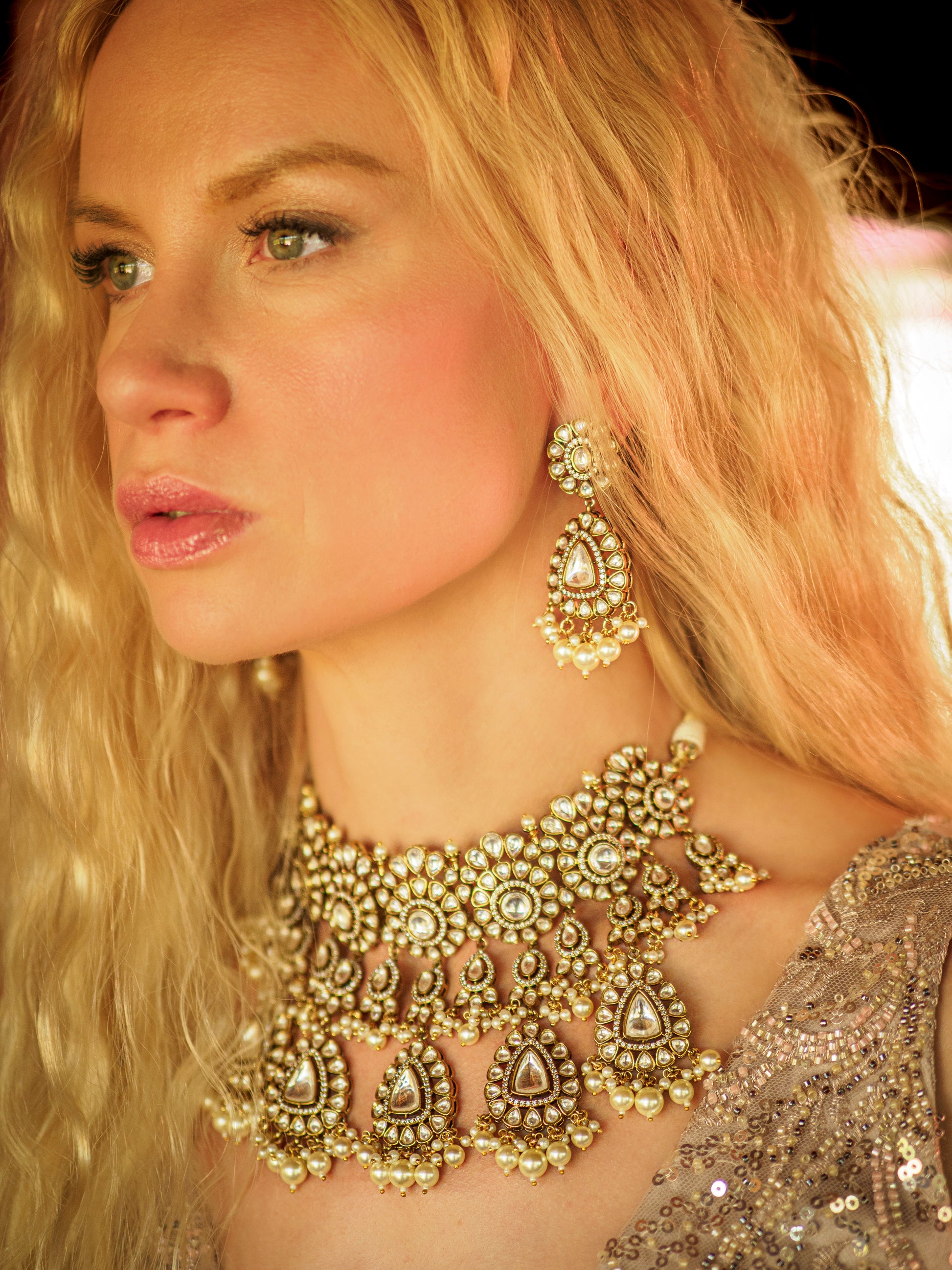 A stunning yet sophisticated Jumpsuit, embellished with Golden zari work .